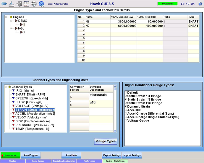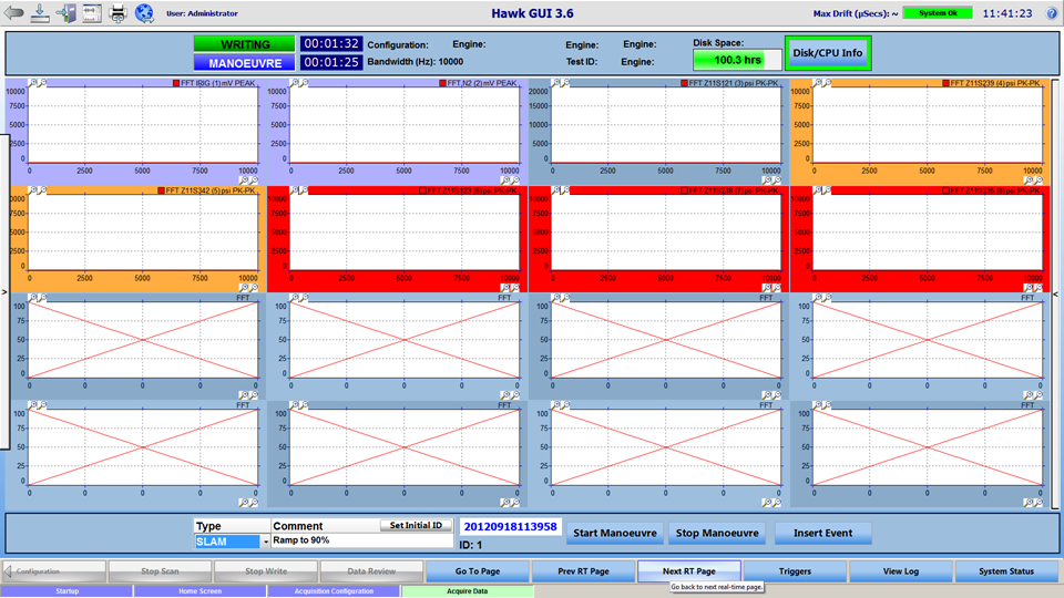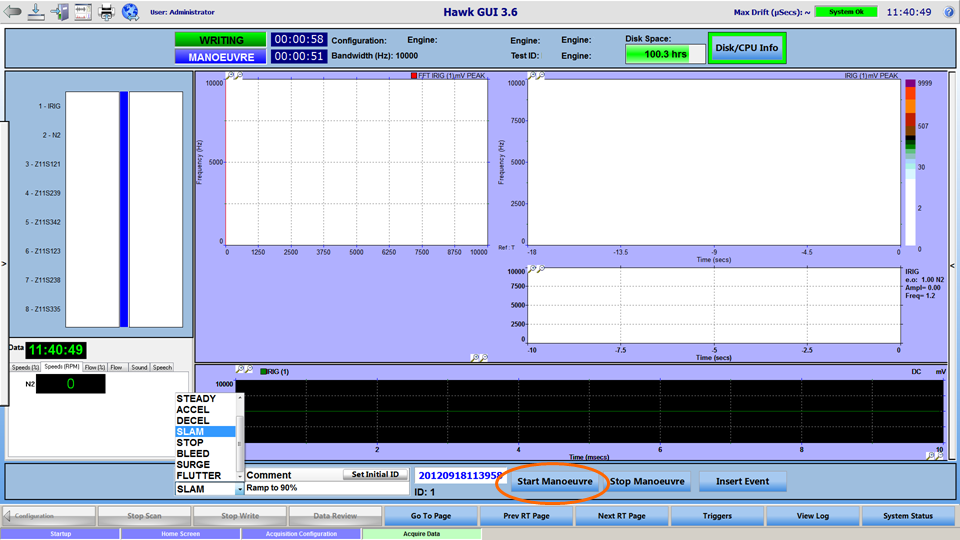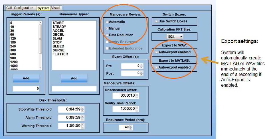 Although most preferences are set, some changes to the system can be made to make operation simpler. Manoeuvre types can be pre-defined based on the flight plan. When the system is configured, it is possible to pre-load more details about the flight plan. The system can be set to “Automatic” which will automatically authorize the data as it is written to disk. Manual mode does not authorize data until the end of a test and allows the user to add event and manoeuvre flags.