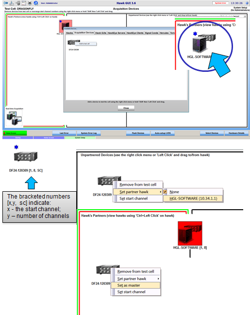 Initially, the Hawk/Dragonfly units are displayed. To pair a Dragonfly with a particular Hawk, hold Control and left-click on the device.