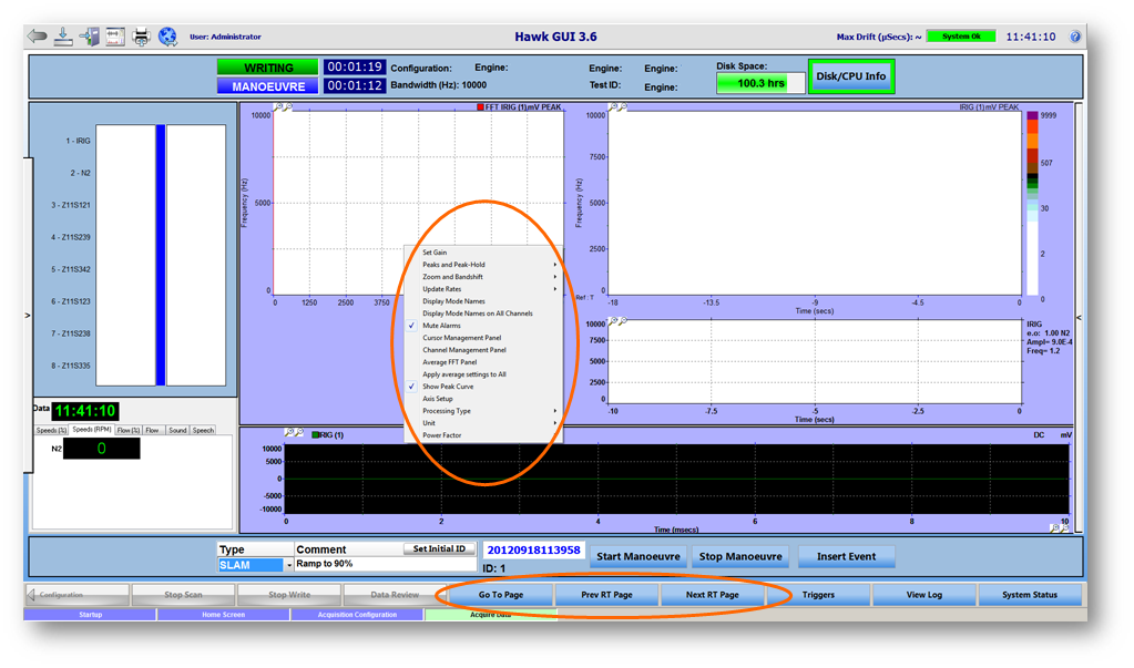 To change real-time pages, click either the “Prev RT Page”, “Next RT Page”, or “Go to Page”.