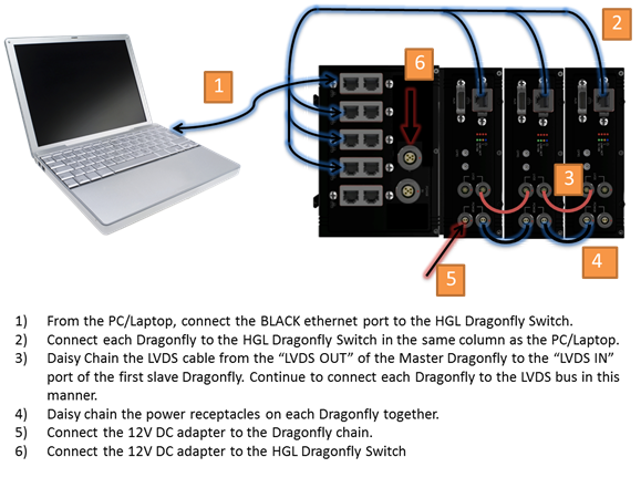 Multiple Dragonfly units with Laptop/PC Host and HGL Switch