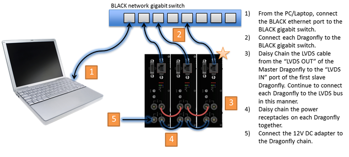 Multiple Dragonfly units with Laptop/PC and commercial gigabit switch