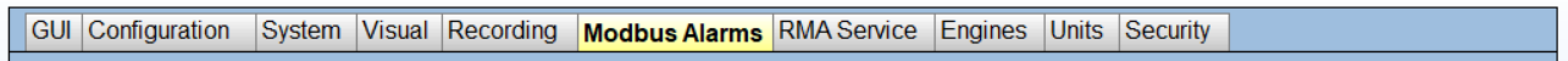 Section to enable ModBus and define the address and port for communicating alarm status to a ModBus system.