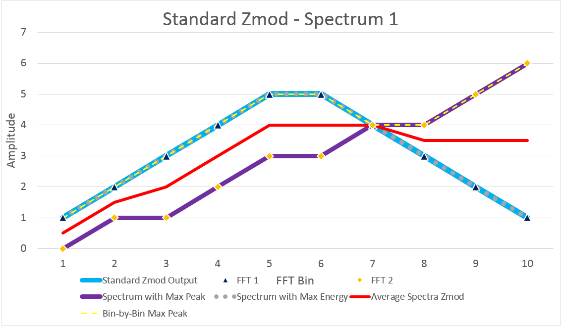 - Spectrum with Max Peak Zmod - This processing method goes through each FFT and for that spectrum displays the FFT that saw the highest peak amplitude.