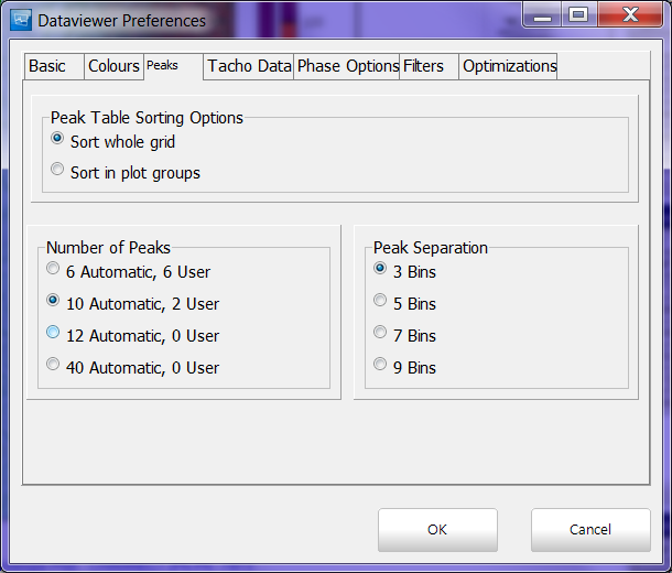 The peaks tabs allows the user to alter how the software picks its peaks in the data.