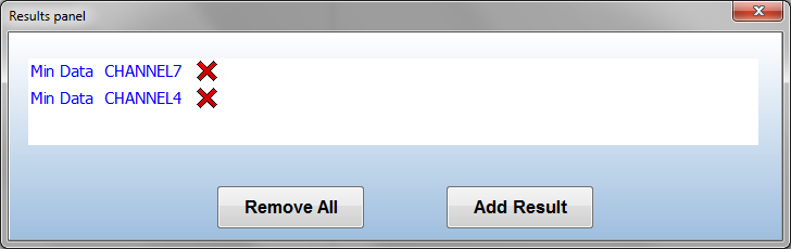 - Add/Remove Results - Brings up the results panel where results can be added or removed