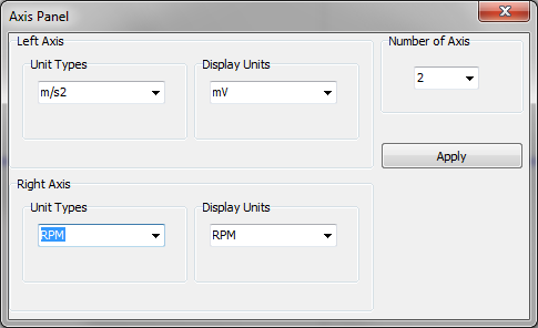 - Axis Setup - Allows for a second axis to be added as well as selecting the unit type and display units of each axis