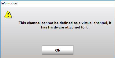 In the example above, the user has clicked on channel 8. Channel 8 being a genuine acquisition channel, it cannot be defined as a virtual channel. The following message will therefore appear on the screen: