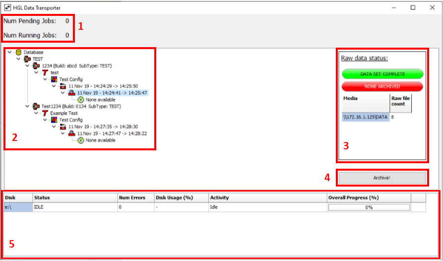 - Once 'OK' has been selected the status at the top of Data Transporter will show 1 Job Running and on the right a spinning wheel icon shows the program has activity