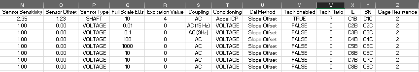 - Excitation Value* - Sets the channel's Excitation value in mV in the Sig Cond tab. The most common value is 4. This primarily applies to channels set to Accel ICP signal conditioning.