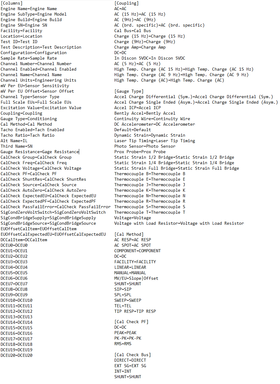 - Channel Type* - Sets the channel's Type in the Main tab. Valid values are ACCEL, DISP, IRIG, PRESSURE, SPEECH, STRAIN, TEMPERATURE, VELOCITY, VOLTAGE