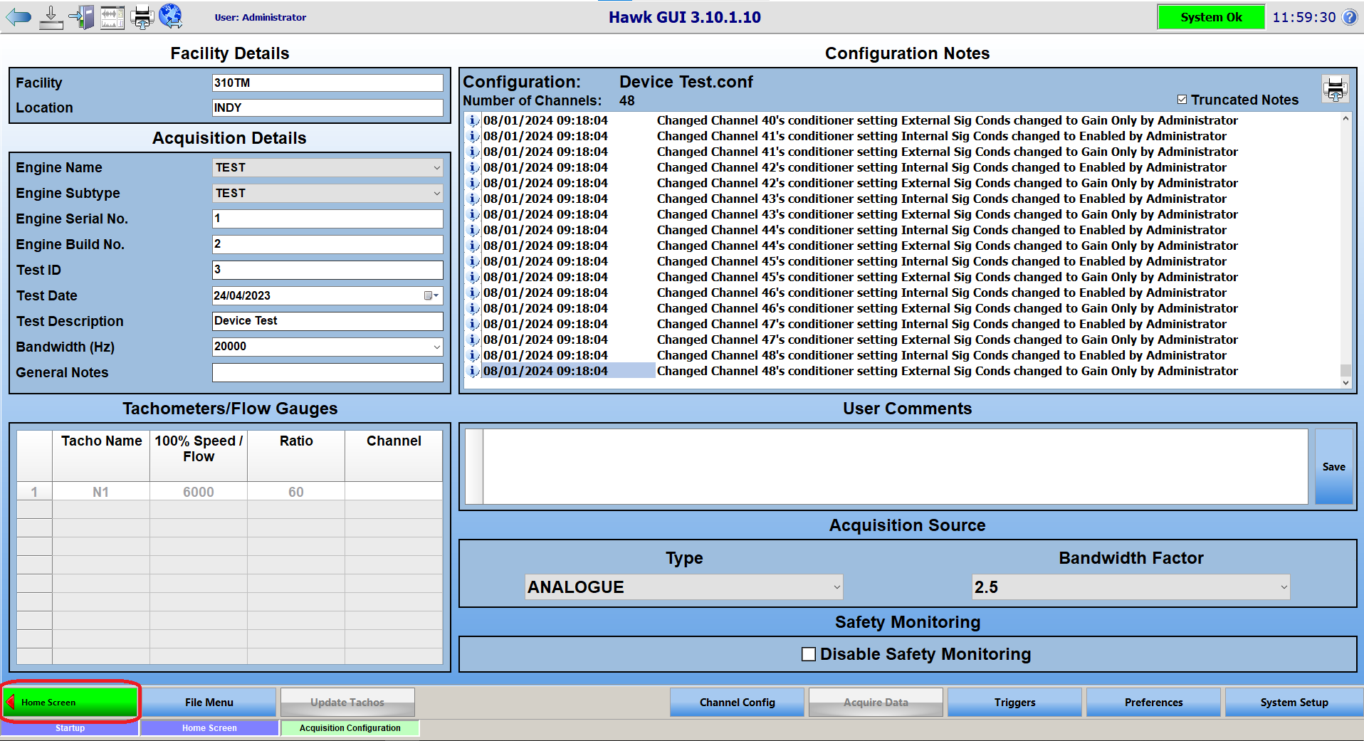 If Hawk Controller encounters an error or unexpected closure, and Recovery Mode is active, the system should resume scanning / writing on its own. When an error or closure occurs, you will be taken to the configuration page. To navigate back to the acquire data page, you must first go back to the home screen.