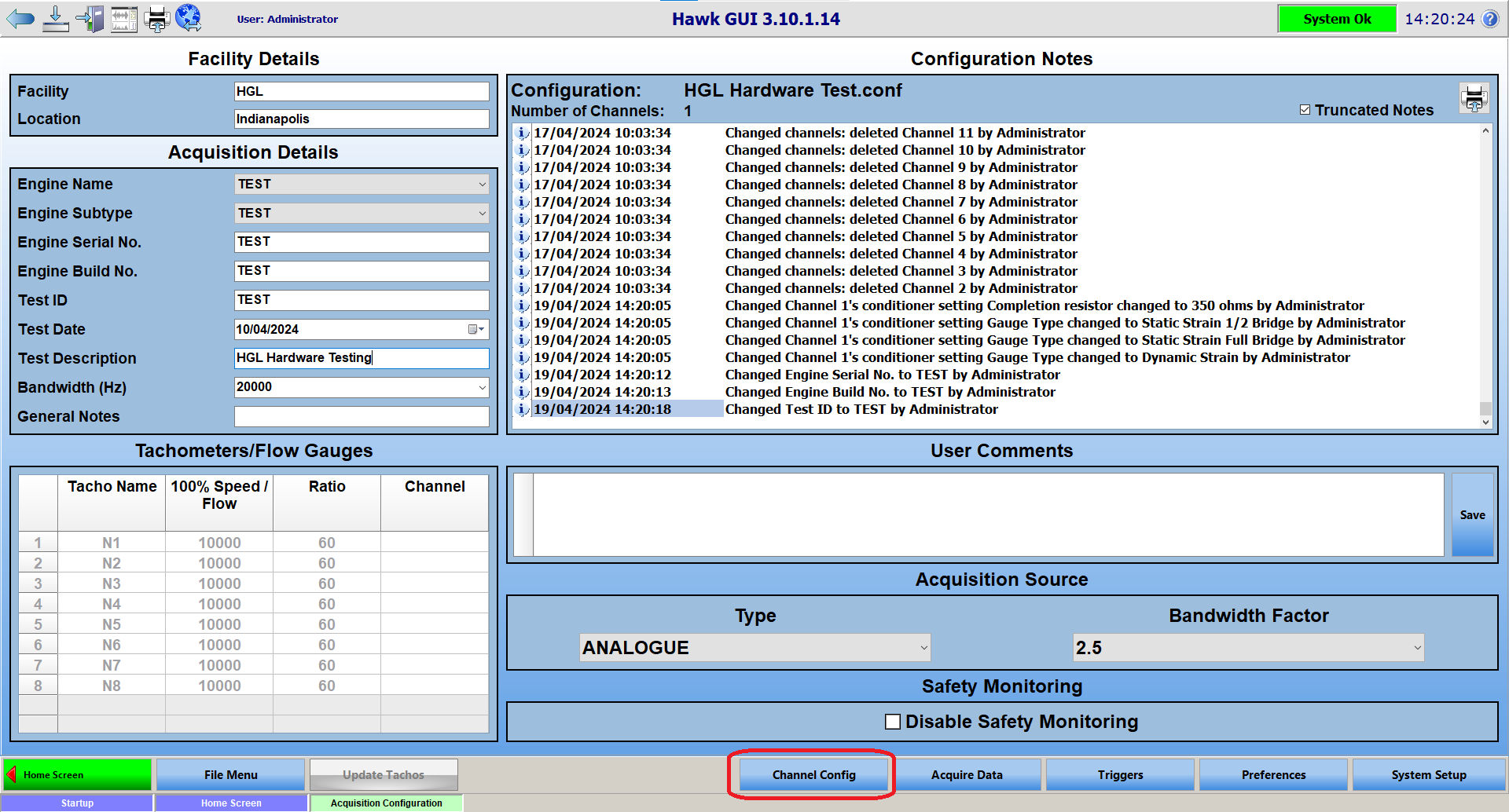 For this example we will be configuring the channel to use a 1/4 bridge strain gauge. First, navigate to the 'Channel Config' page in Hawk GUI.