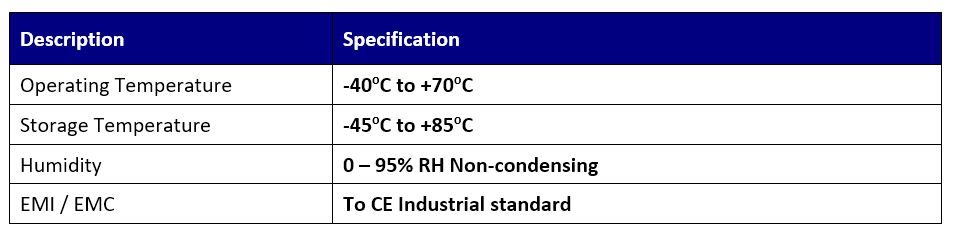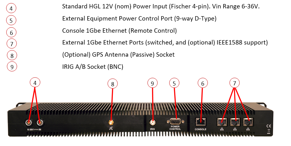 The SyncBox is presented in a conduction / radiation cooled milled Aluminum chassis (482x200x50mm) weighing approximately 3.5kg. All internal components are conduction / radiation cooled; as such the unit is applicable for relatively tough environmental conditions (-40 to +70oC)