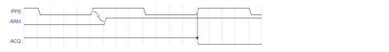 - ARM - When it becomes active, signals that the next active edge of the PPS signal starts acquisition. Conversely, when it becomes inactive, signals that the next active edge of the PPS signal ends acquisition.