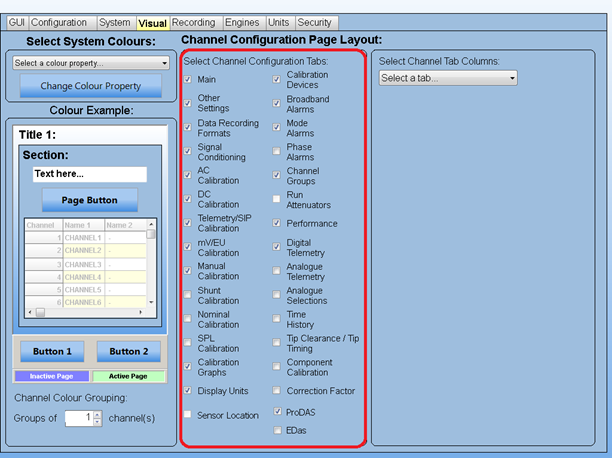 Other tabs are available in the Channel Configuration page. Those are will be described in later sections of this document. The user has control over which tab are visible in the Channel Configuration, via the preferences: