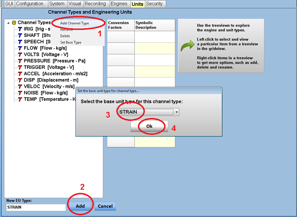 IMPORTANT: The user is allowed of up to 10 units per channel type. Also, a unit name must be unique across all channel types (e.g. MPa cannot be defined for both pressure and strain).