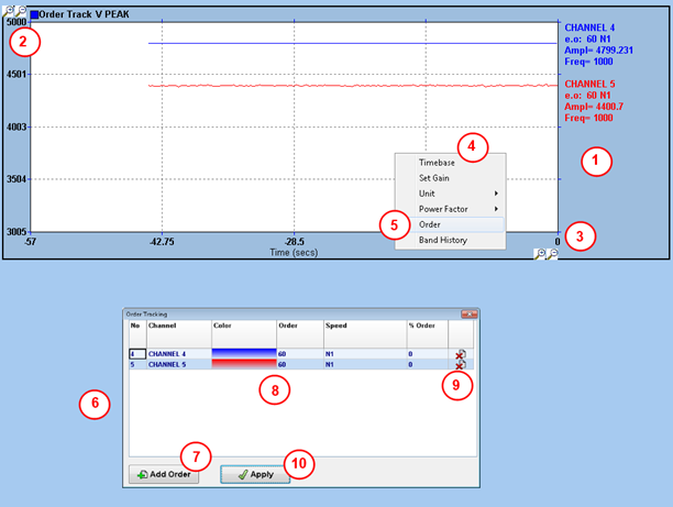 - List of the orders currently being tracked (channel name, order number, tacho channel, amplitude and frequency). Note that is it possible to follow an order on different channels, as long as the channels have the same acquisition unit.