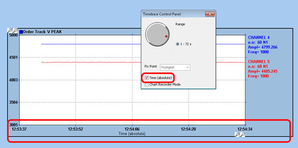 The user may change the time axis to show absolute time (the data time) instead of relative time: