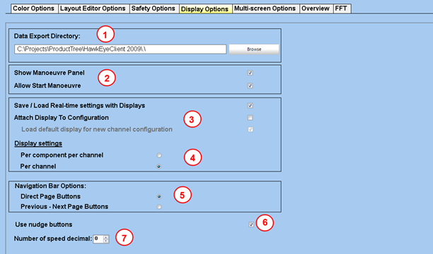 When “attach display to configuration” is ticked, if there are no displays associated to the current channel configuration (for example, the first time a new channel configuration is used), Hawkeye will load a default display file if “Load Display for new channel configuration” is ticked. Otherwise, Hawkeye will remain on the same display that was used at the last acquisition. The default display is called “HawkEyeDefaultDisplay.xml” for the stand-alone HawkEye, and “SingleScreenDefaultDisplay.xml” for the HawkEye embedded in the Hawk GUI; it may be edited by loading it manually and saving it back under the same name.